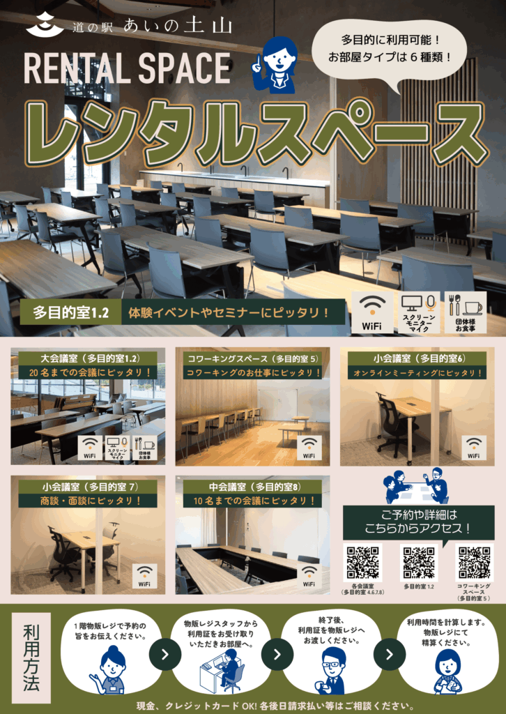 会議や講座、ワークショップなど、さまざまな用途にご利用いただけます。